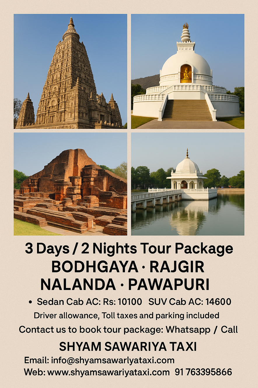 Explore Bihar’s sacred soul and ancient grandeur with Shyam Sawariya Taxi, ensuring comfort, safety, and unmatched hospitality throughout your journey.
