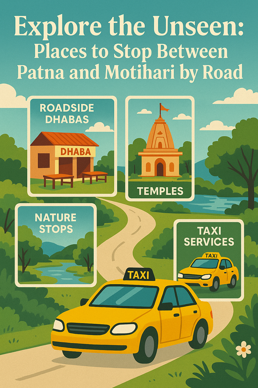 In this guide, weโ€™ll uncover the best places to stop between Patna and Motihari โ€” from rustic roadside dhabas and age-old temples to serene nature escapes. Weโ€™ve also included useful taxi service options and travel tips to make your ride comfortable and enriching.